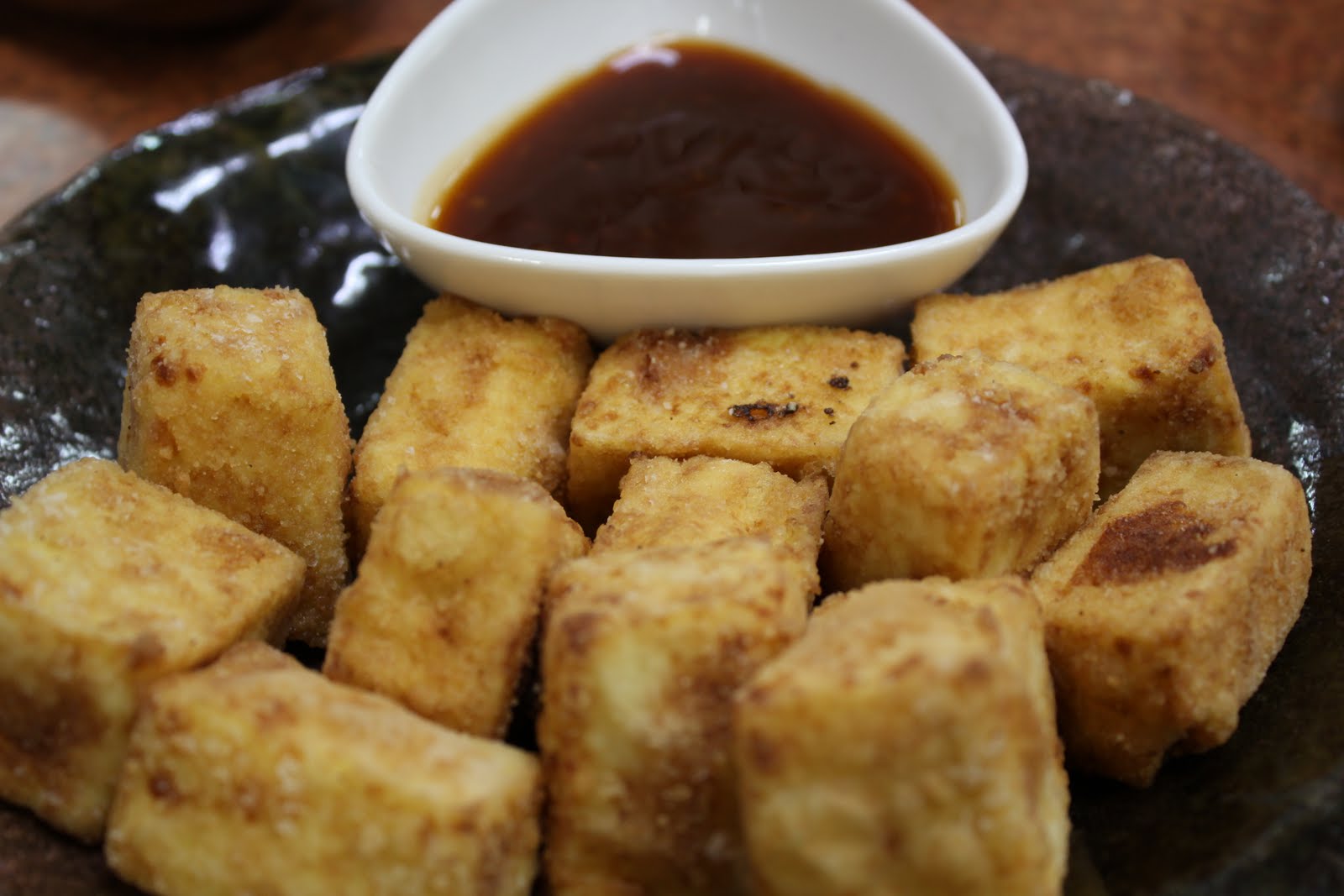綠茶炸豆腐,這道是雞蛋豆腐裹粉炸的,外層十分酥脆
